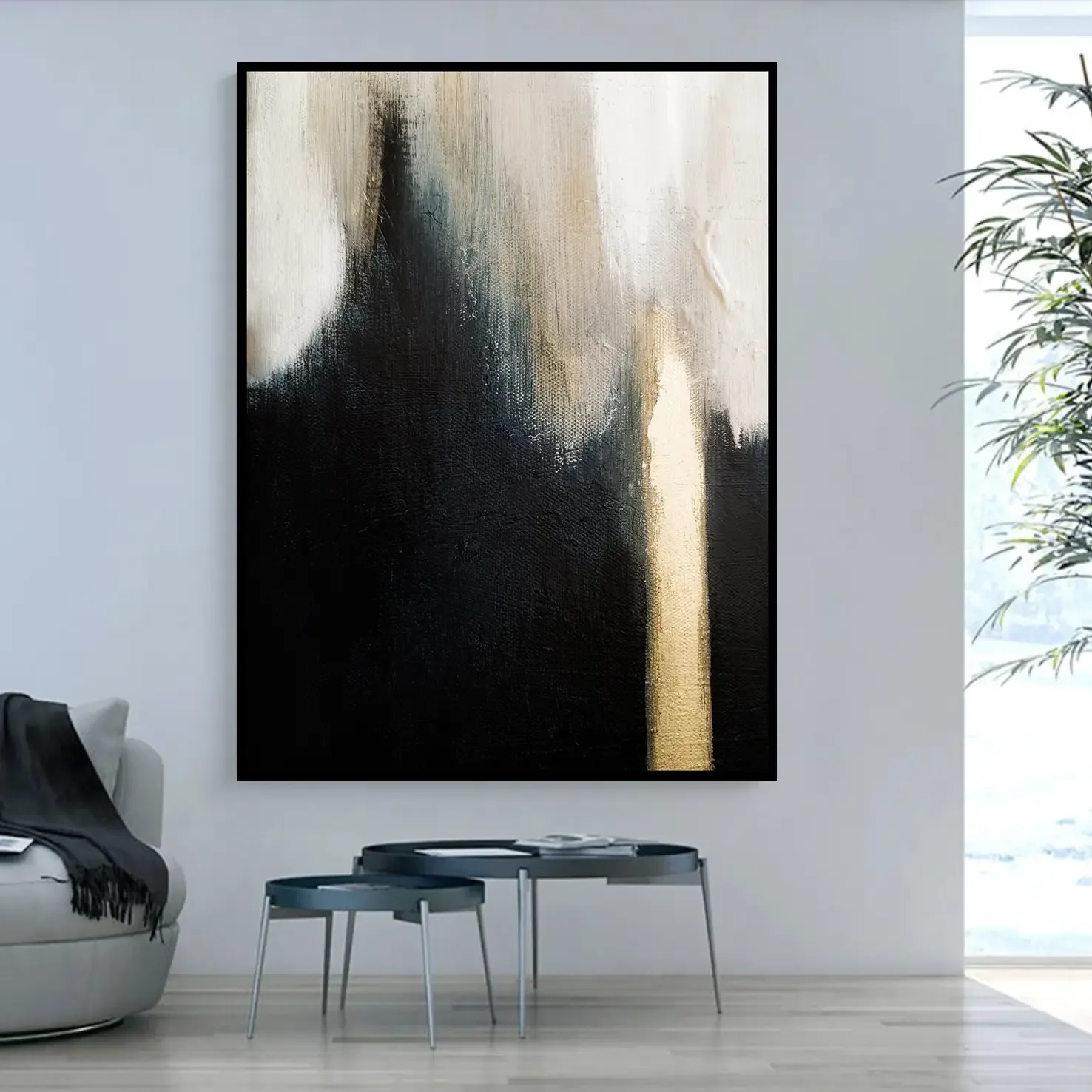 10412:Tablou abstract monocrom cu auriu