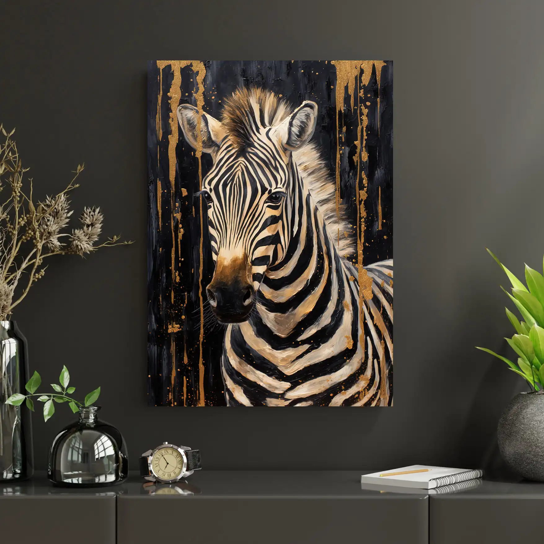 12814: Tablou zebra cu efect de pictura negru auriu