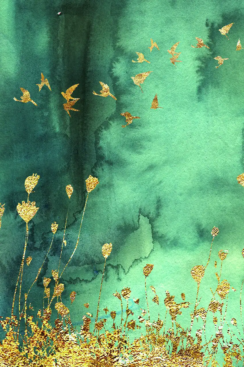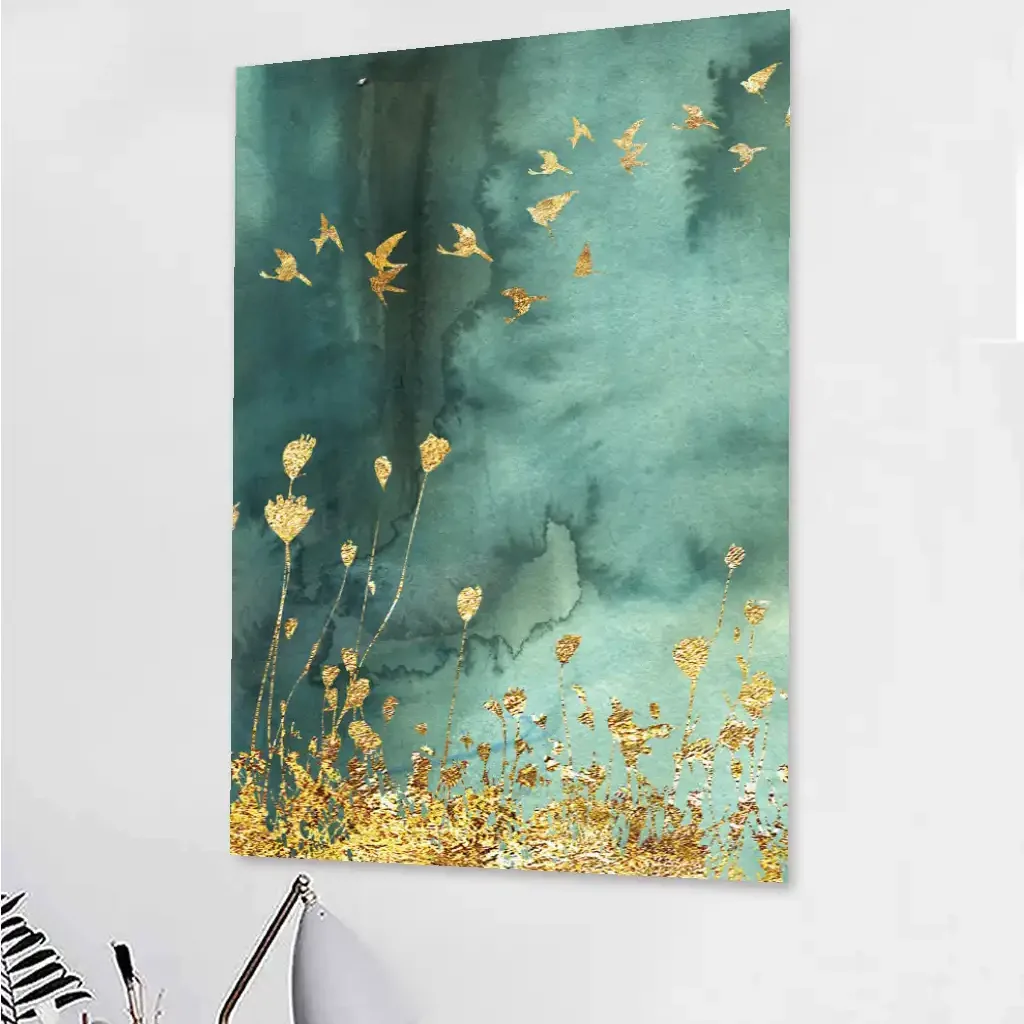 7703: Tablou abstracție modernă cu albastru și păsării aurii